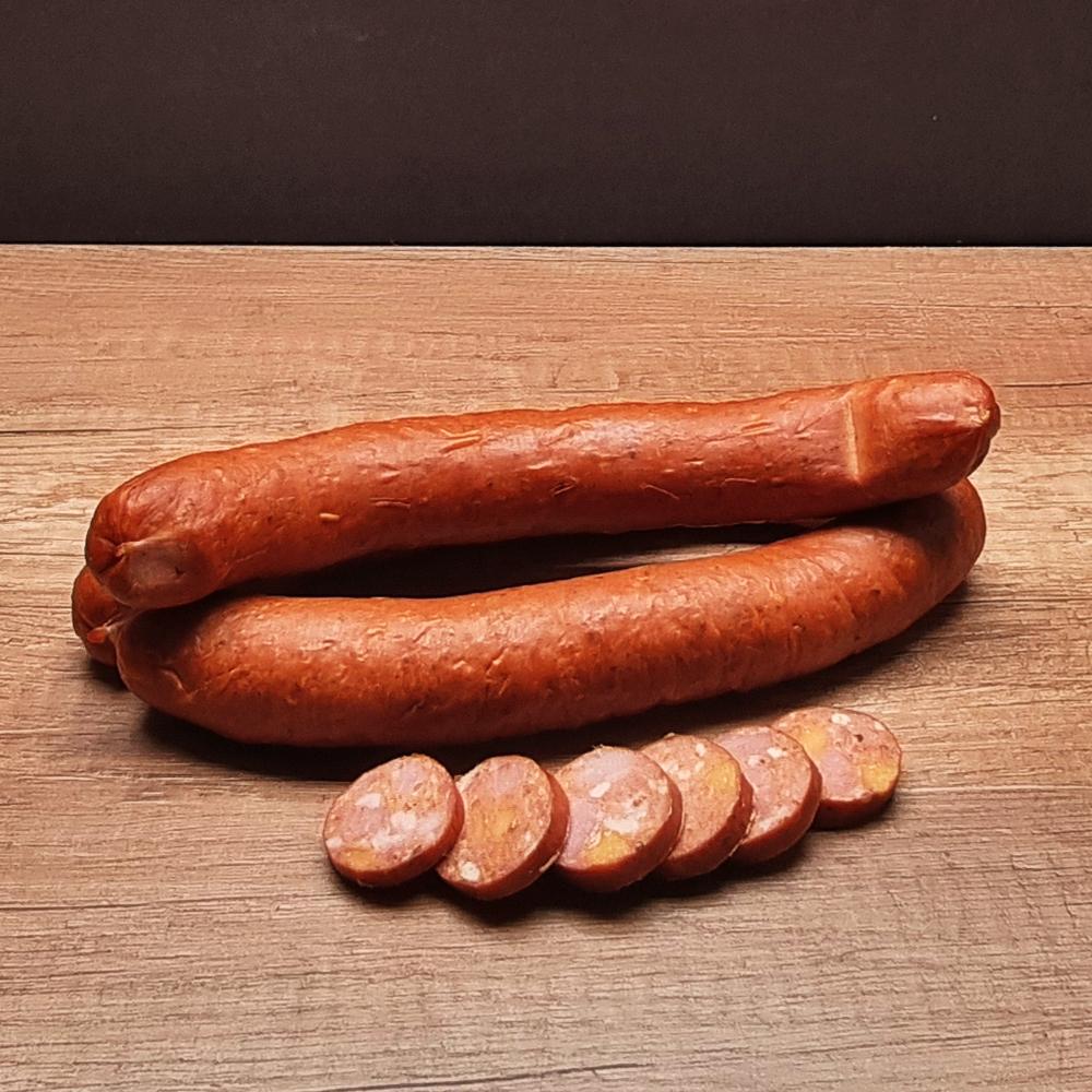 Popis Klobása s čedarem a nivou
